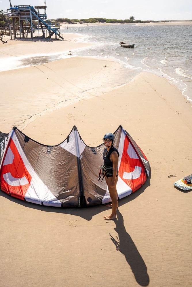 Marquinhos est arrivé une heure plus tard en me confirmant que le vent était parfait, et en effet j’ai passé la meilleure session de kite de ma vie ! Il parlait français, ce qui était top pour bien comprendre les instructions. Je suis encore débutante, j’avais déjà eu l’occasion de faire cinq ou six cours de kite par le passé, et l’objectif de la session était de réussir à remonter au vent. En début de session, c’était mon prof qui me remontait le kite au vent (tandis que je remontais sur la plage) puis en fin de session, je réussissais avec joie à remonter au vent ! Ce spot est vraiment parfait pour les débutants ou ceux qui souhaitent progresser rapidement ; et pour ceux qui maîtrisent, vous allez vous régaler avec ces paysages de dingues !