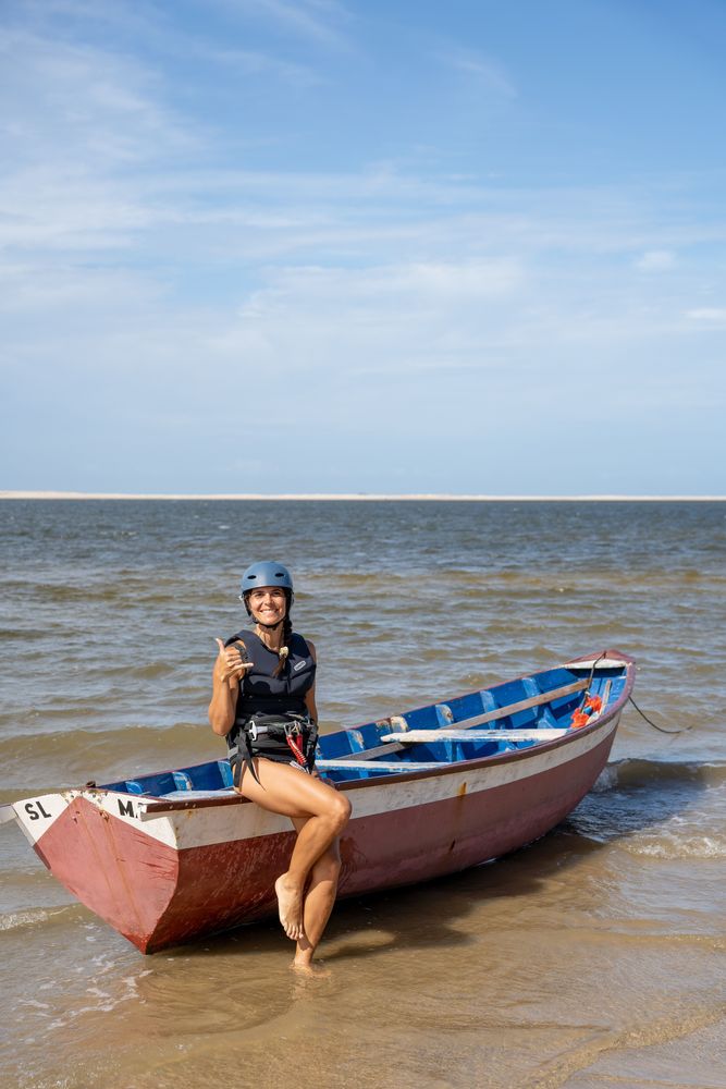 Atins est un spot de kitesurf tout simplement magique. Entouré de dunes, le spot est totalement flat. Le vent on-shore est toujours constant et souffle sur une grande étendue d’eau cristalline plate, peu profonde et chaude. Les conditions sont parfaites pour apprendre ou se perfectionner. Il n’y avait personne sur l’eau quand j’ai fait mon cours de 2h de kitesurf, j’étais seule au monde : un vrai bonheur.