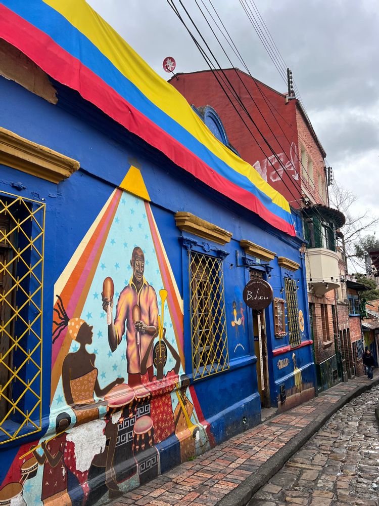 Après le déjeuner, c’est le moment de flâner dans les rues animées de la Candelaria, le quartier historique de Bogotá, avec ses maisons colorées et son atmosphère charmante.