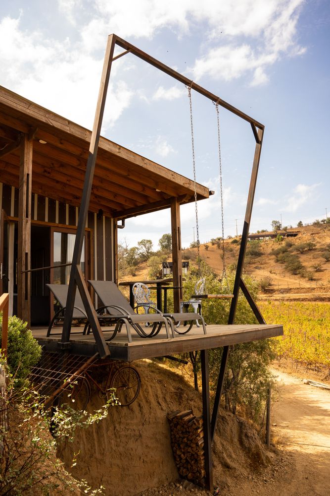 Ce chalet incarne le parfait mélange entre confort moderne et reconnexion avec la nature. Avec son grand lit qui donne directement sur les vignes, chaque matin offre une vue panoramique à couper le souffle à travers la baie vitrée, tandis que la terrasse, agrémentée d’une petite table, de deux chaises et de bains de soleil, est un havre de tranquillité pour savourer le doux climat chilien. Pour ajouter une touche de nostalgie, une balançoire offre des moments de détente contemplative au milieu de ce paysage idyllique.