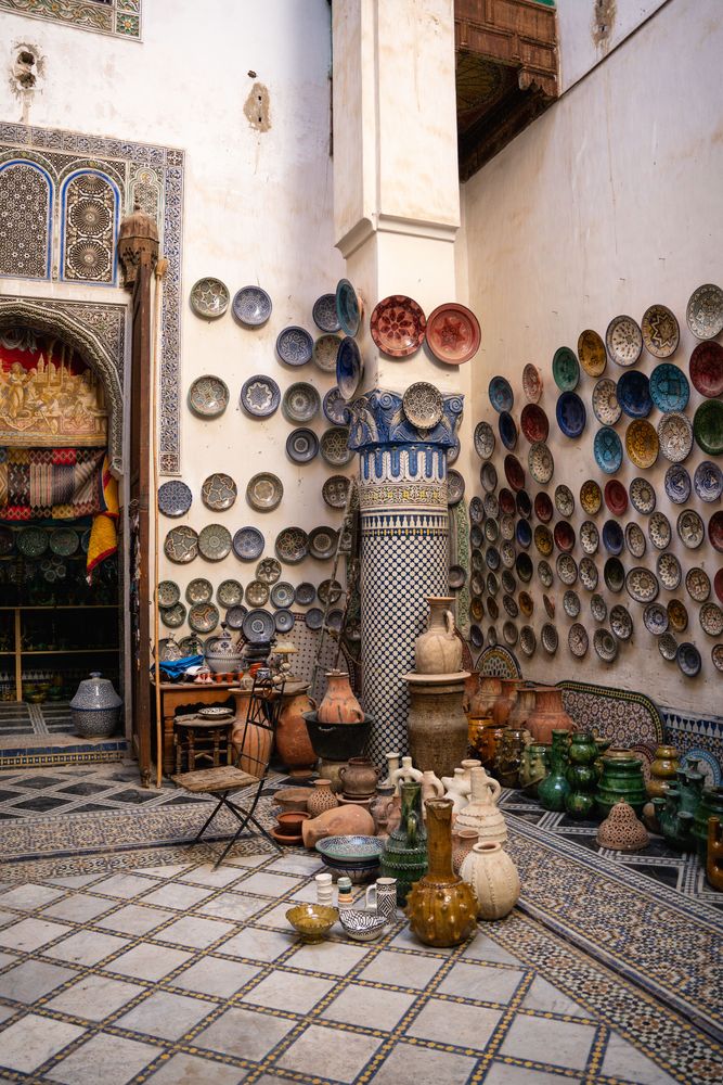 - Atelier de poterie et zellige : découvre les techniques de la poterie et des mosaïques traditionnelles. Si tu veux une option moins chère (13€), tu peux faire un atelier de peinture sur poterie à Fès pour décorer ta propre pièce de céramique aux côtés d’artisans locaux.